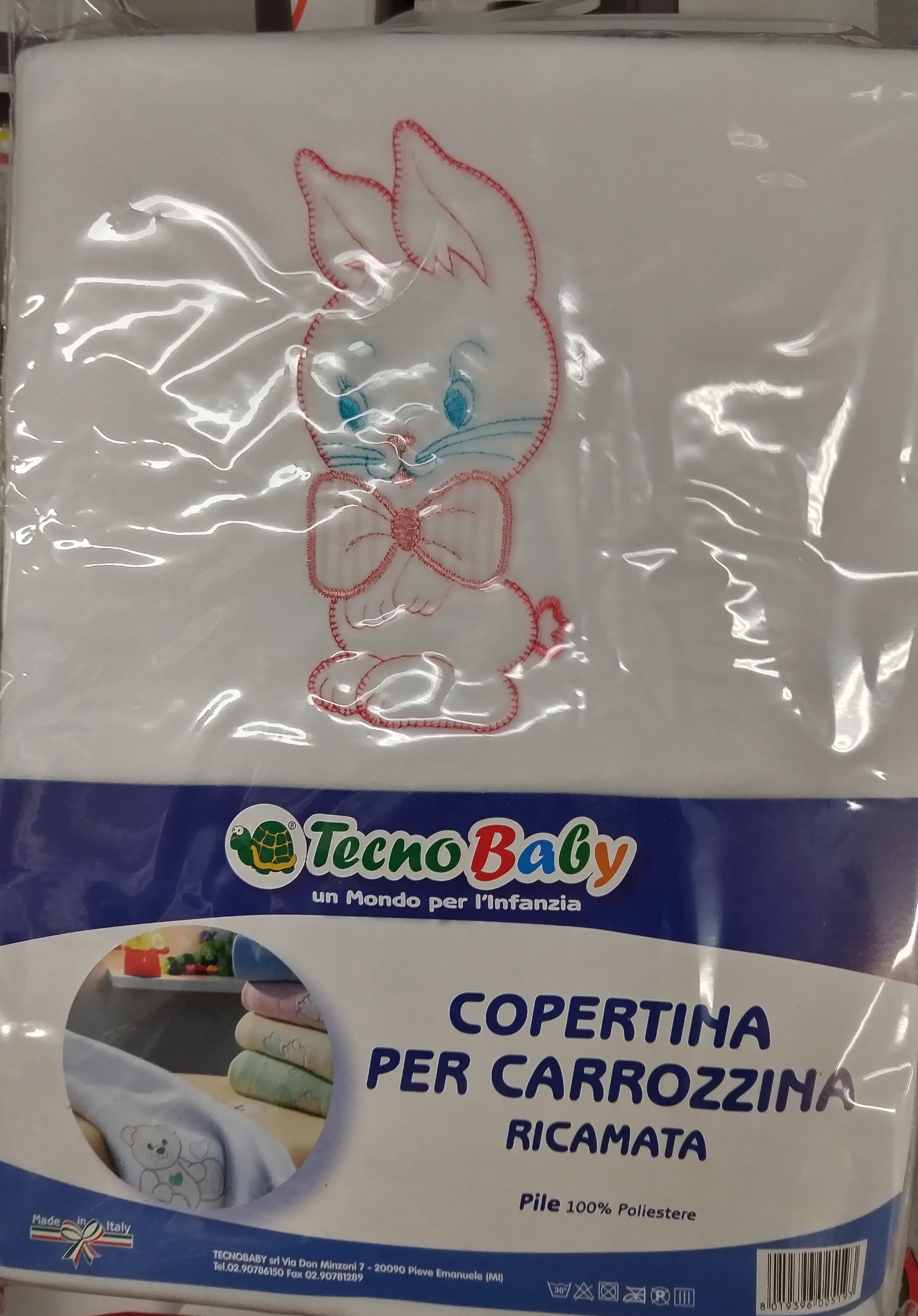 COPERTINA RICAMATA IN PILE PER CARROZZINA BIANCA/CELESTE