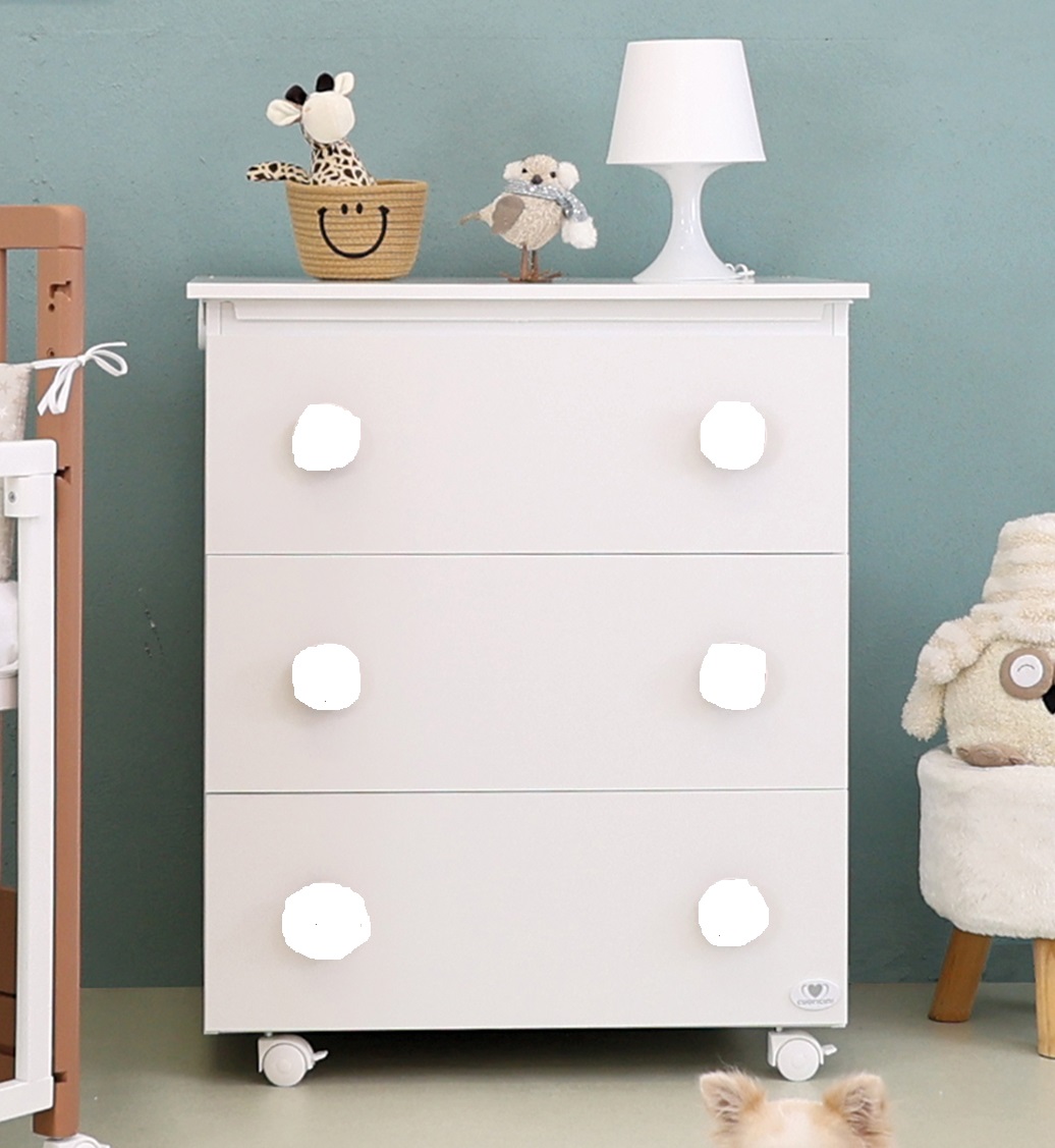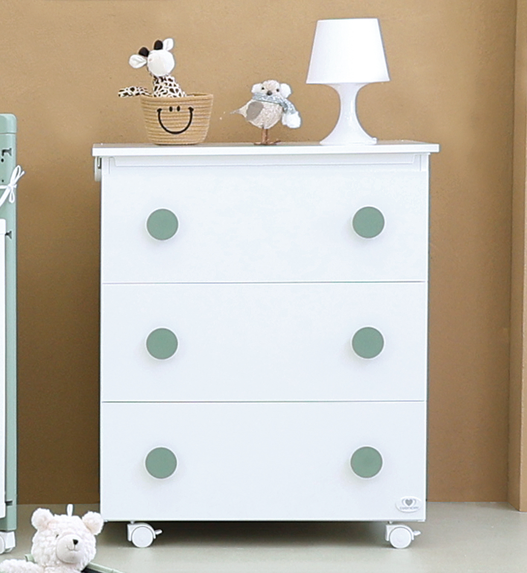 BAGNETTO CASSETTIERA CON VASCHETTA IN VARI COLORI: BIANCO CON MANIGLIE VERDI
