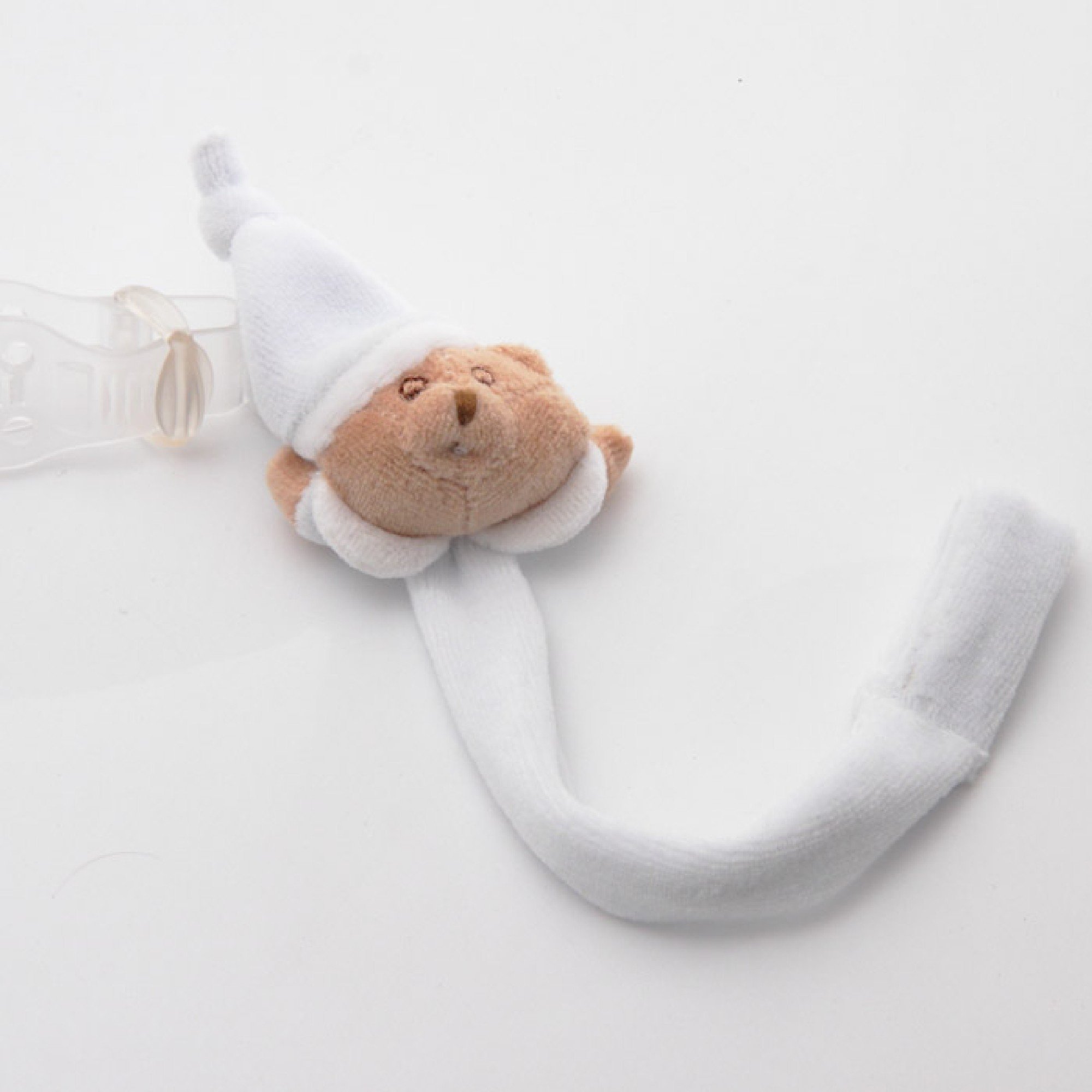 La catena della linea Puccio è un comoda fascetta che si attacca al vestito del tuo bambino per fare in modo che il ciuccio sia sempre al suo fianco. Comodo e pratica per la mamma, divertente per il bambino con l'applicazione del simpatico orsacchiotto. Lunghezza: 15cm