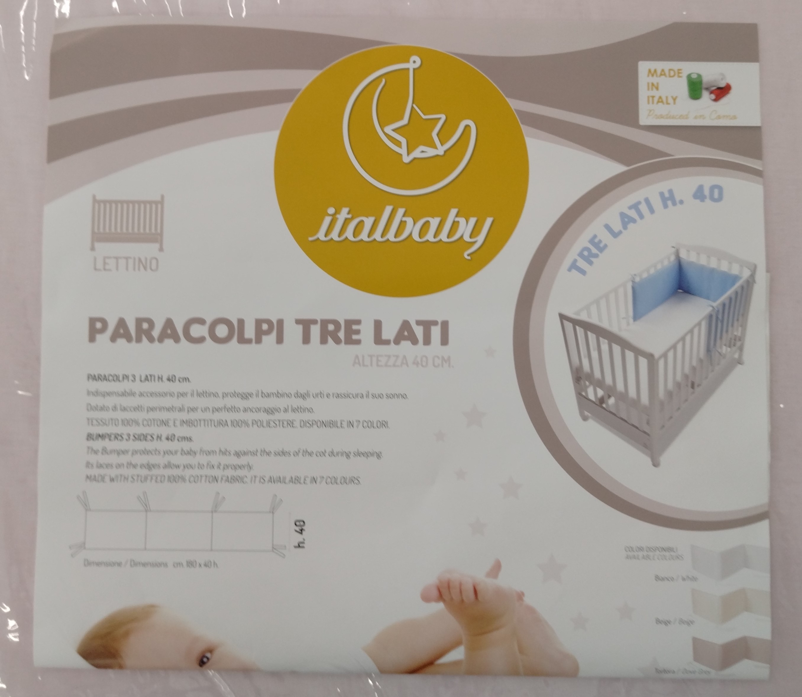 Indispensabile accessorio per il lettino,protegge il bambino dagli urti e rassicura il suo sonno.