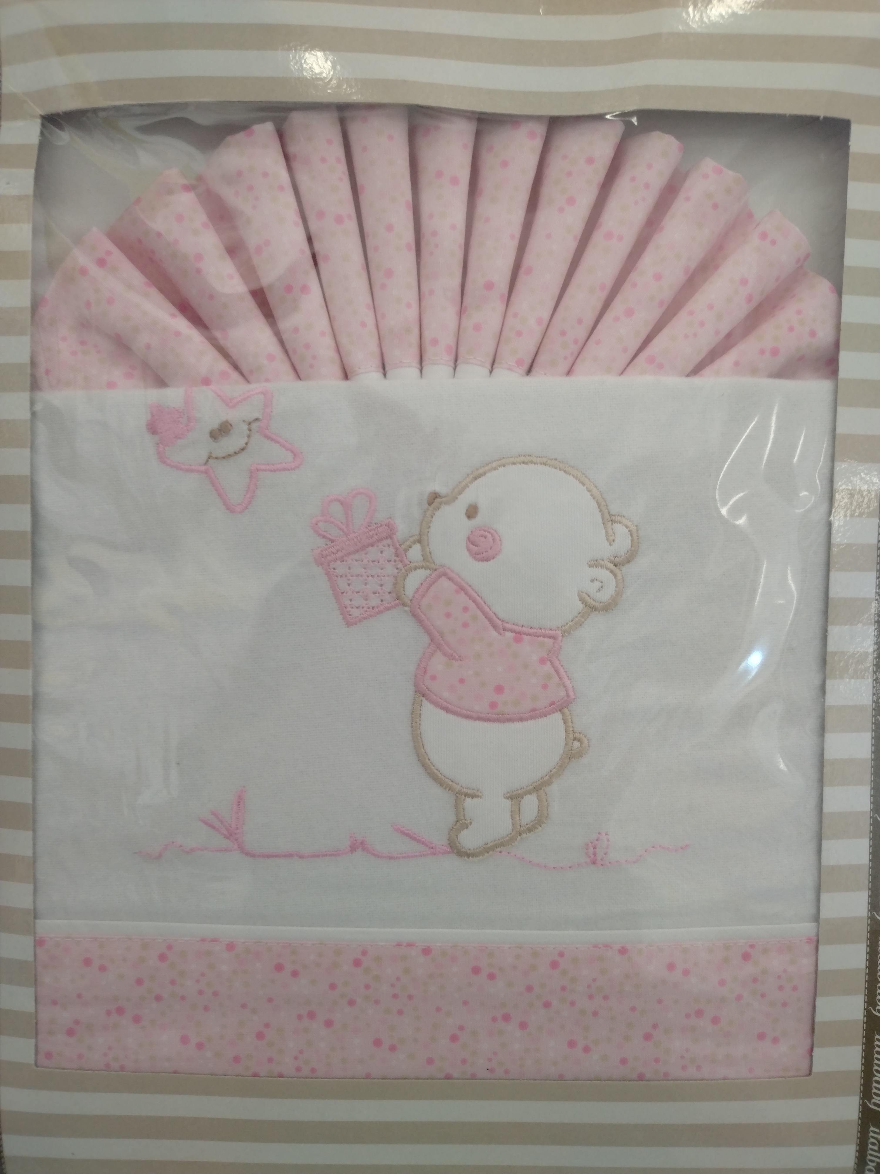SET 3PZ LENZUOLA PER LETTINO RICAMATO IN FLANELLA CON 3 COLORI DIVERSI