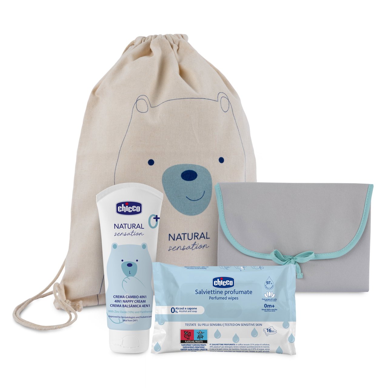 - Una dolce idea regalo che contiene tutto il necessario per il cambio pannolino: igiene e protezione anche fuori casa