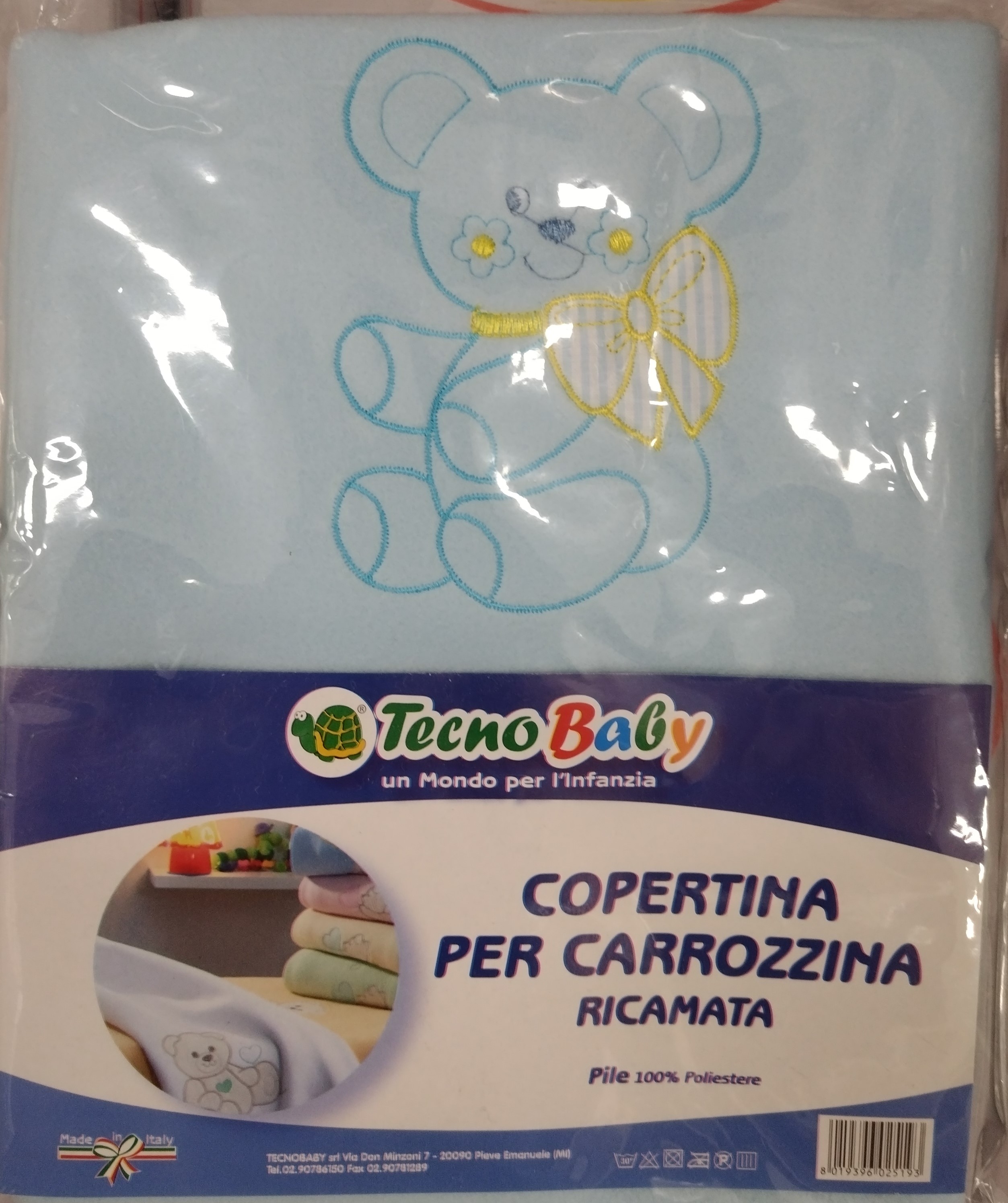 COPERTINA RICAMATA IN PILE PER CARROZZINA CELESTE