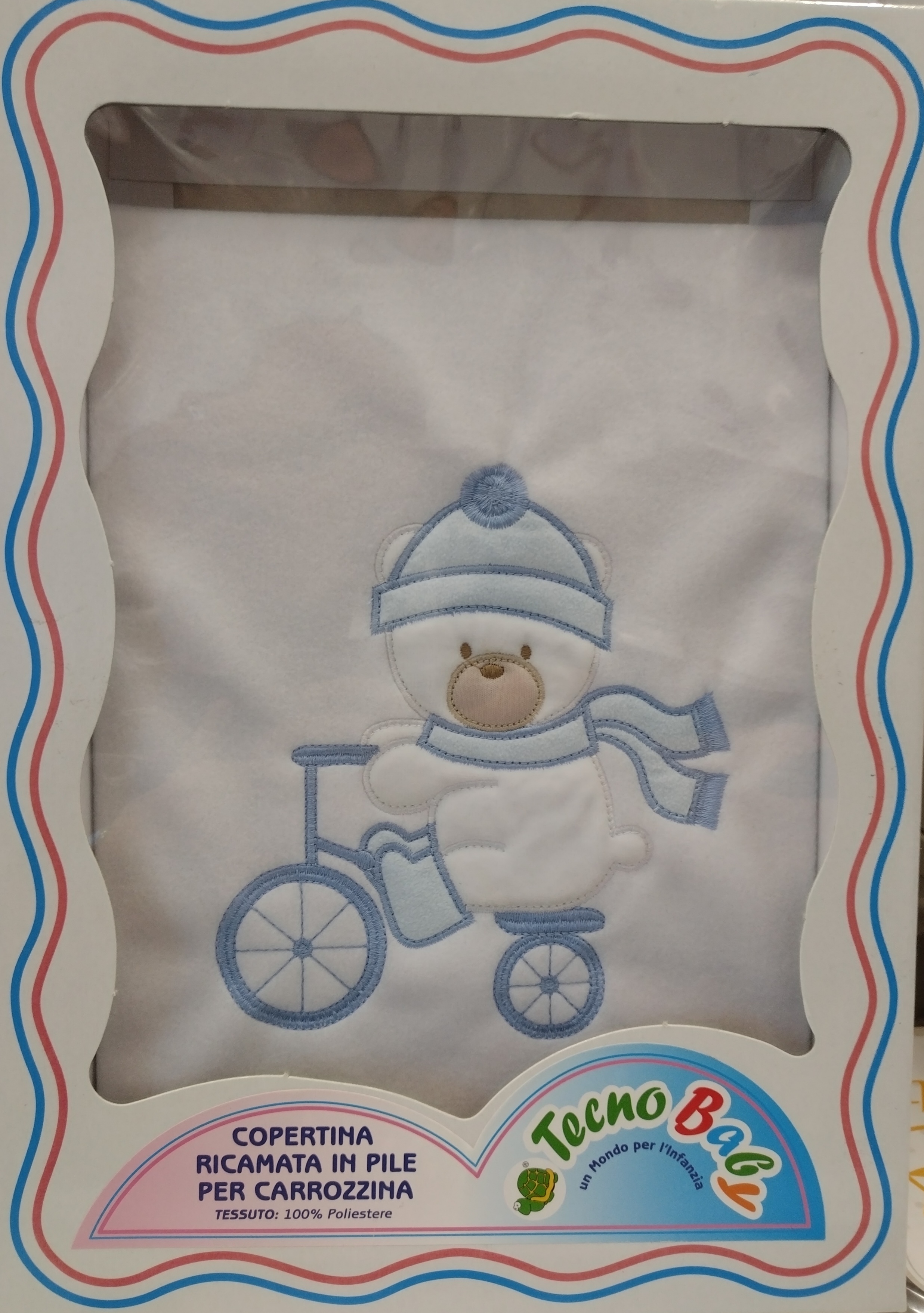 Copertina per carrozzina ricamata in confezione scatolata misura aperta 95x55cm