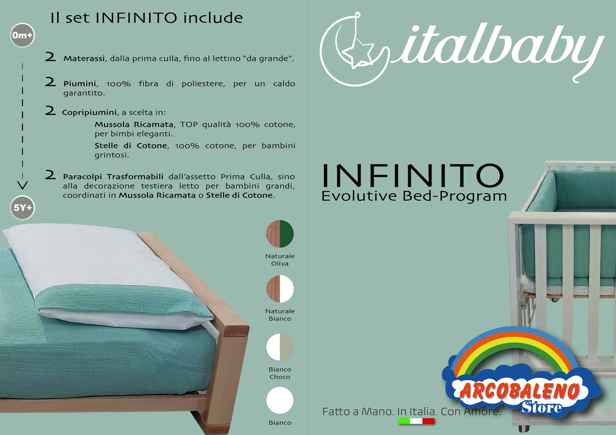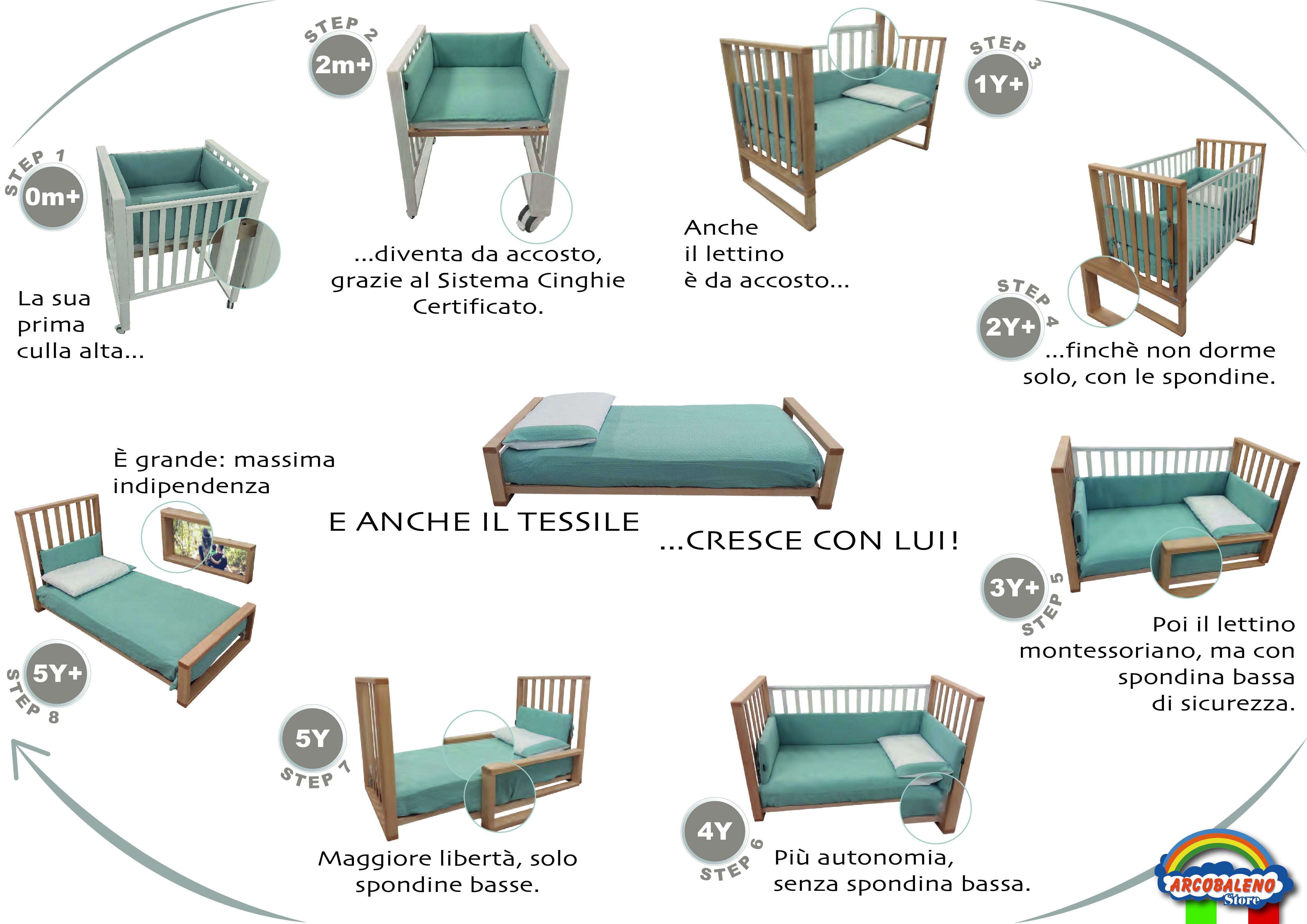 Una Culla-lettino evolutivo,fino a 8 diverse trasformazioni