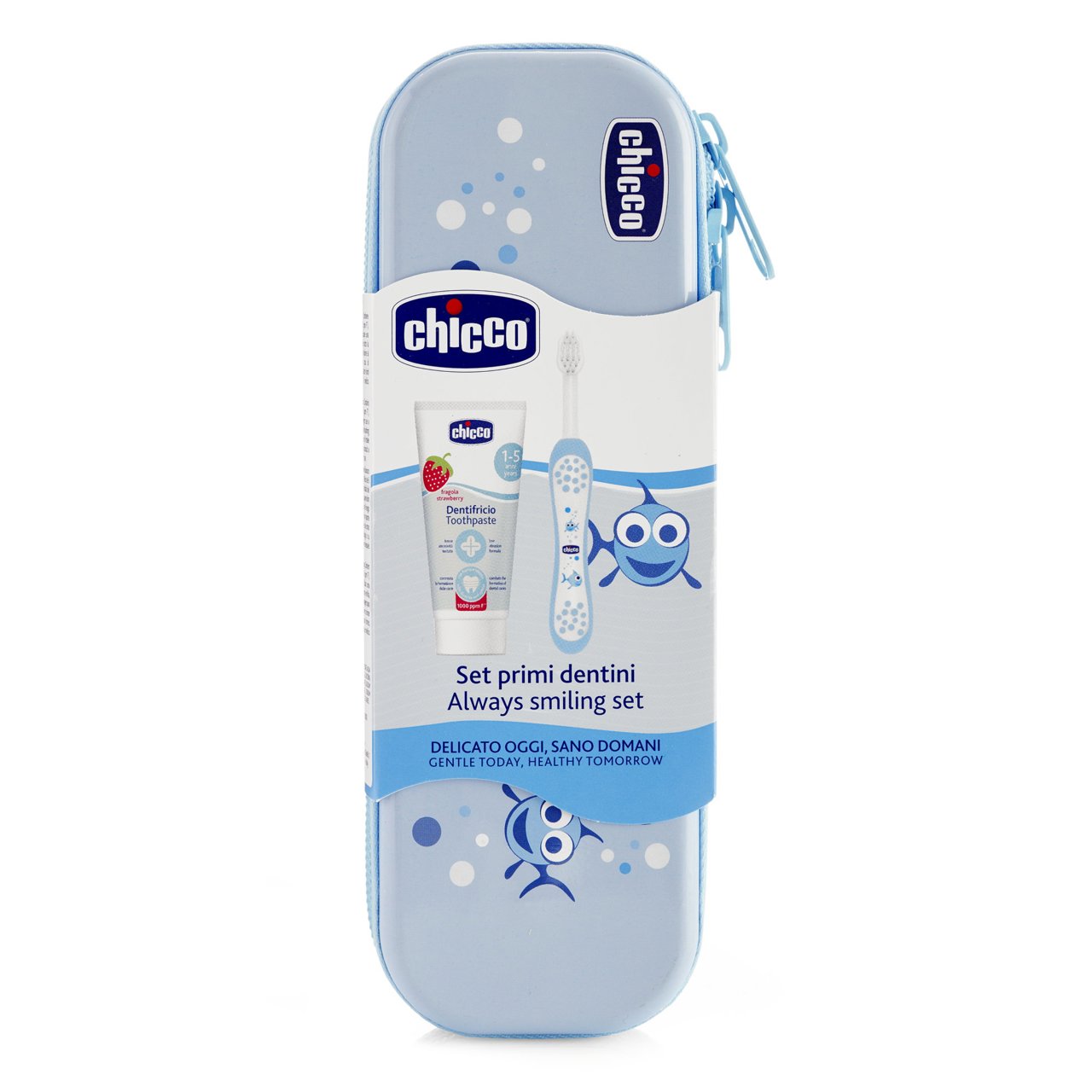 - Il Set Primi Dentini Chicco ha tutto ciò che ti serve per l'igiene orale del tuo bambino anche fuori casa o all'asilo.